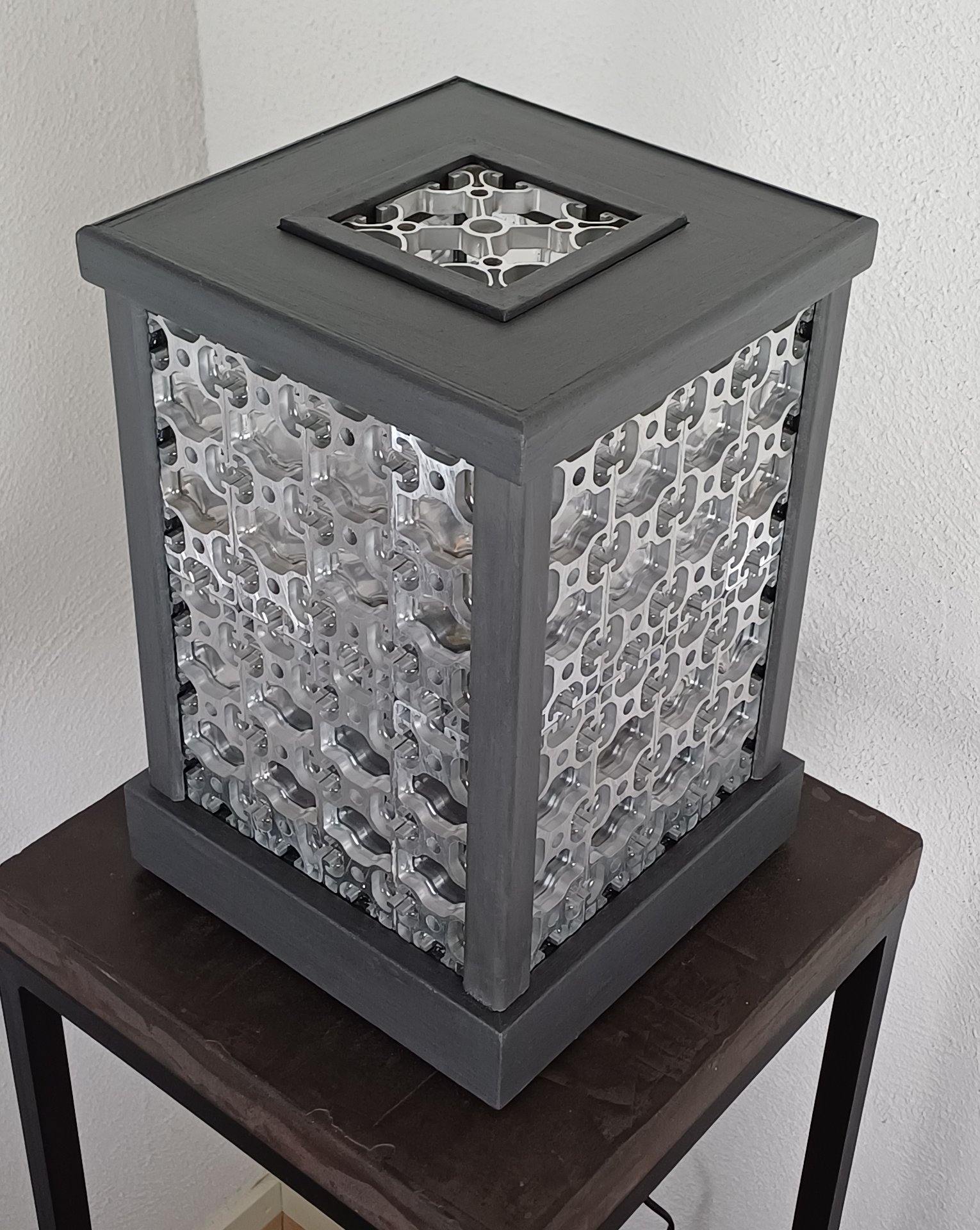 Lantern Java, made of aluminium and wood. Finish in chalk paint with varnish, aluminium protected by nano-coating.
